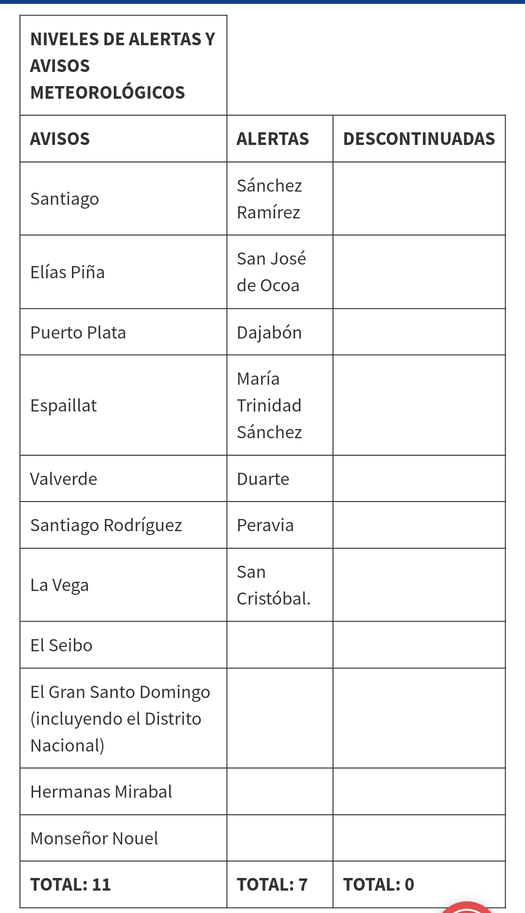 - Distrito Nacional: Nublados, aguaceros con tronadas y aisladas ráfagas de viento.