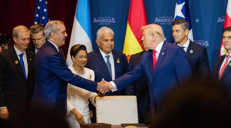 La cumbre, denominada “Escudo de las Américas”, se celebró en el resort Trump National Doral de Miami y contó con la presencia de representantes de diecisiete naciones aliadas, entre ellas Argentina, El Salvador, Ecuador, Paraguay, Chile, Costa Rica, Panamá, Honduras, República Dominicana, Bolivia y Trinidad y Tobago.