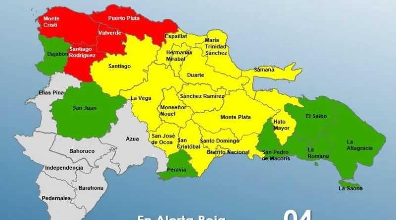 Monte Cristi, Valverde, Santiago Rodríguez y Puerto Plata figuran en alerta roja, de acuerdo con el más reciente boletín del COE.